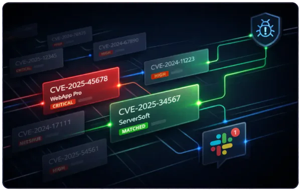 As soon as a relevant CVE is published, alerts are pushed instantly to your channels.